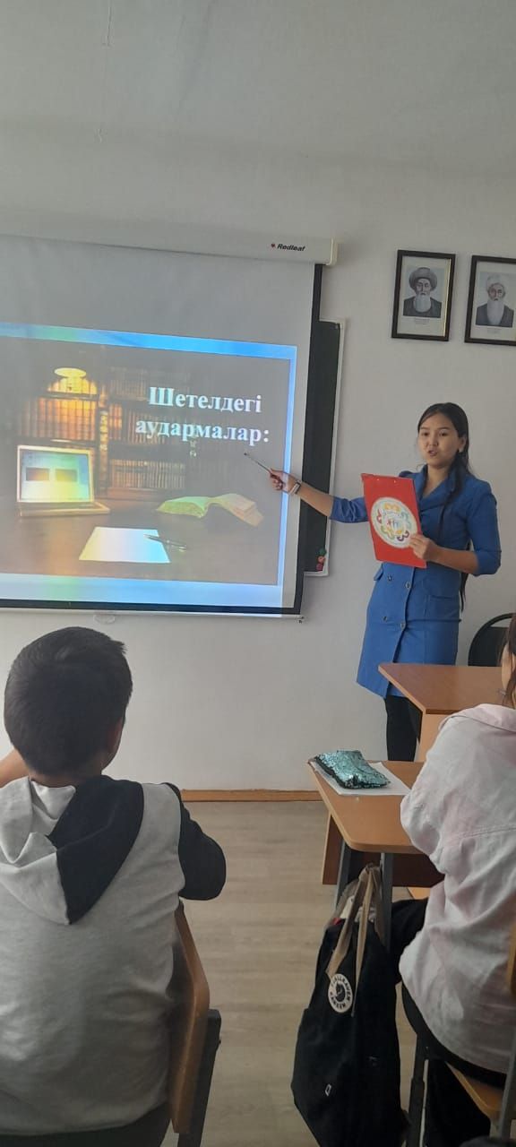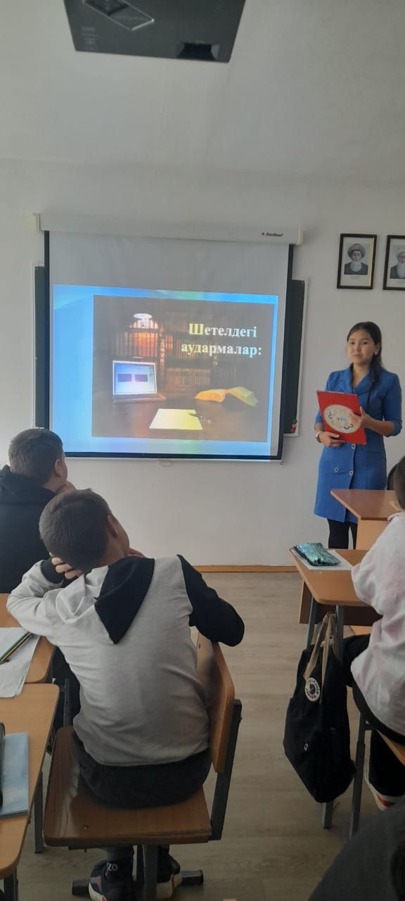 Сабақ мақсаты:балаларды ұлы ақынның шығармашылығы және өмір баянымен таныстыру. Сабақ барысында викориналық сұрақтар қойылды, балалар беслене қатысты.
