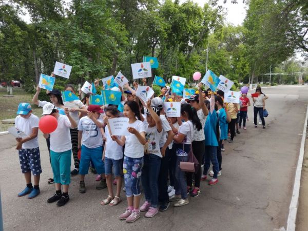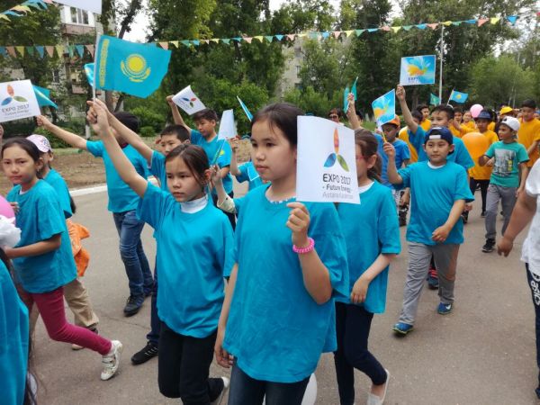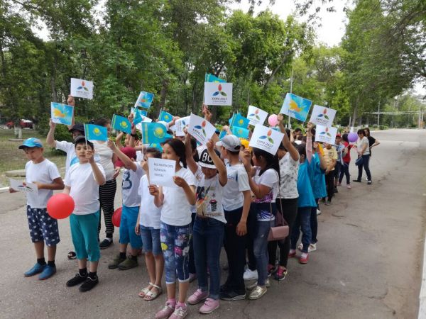 №2 жалпы орта білім беру мектебінің «КҮНШУАҚ» жазғы сауықтыру орталығы бүкіләлемдік «ЭКСПО-2017» көрмесінің өтуіне байланысты аталмыш шараны қолдайтындарын білдіріп, «шығармашылық шеруге» шықты.