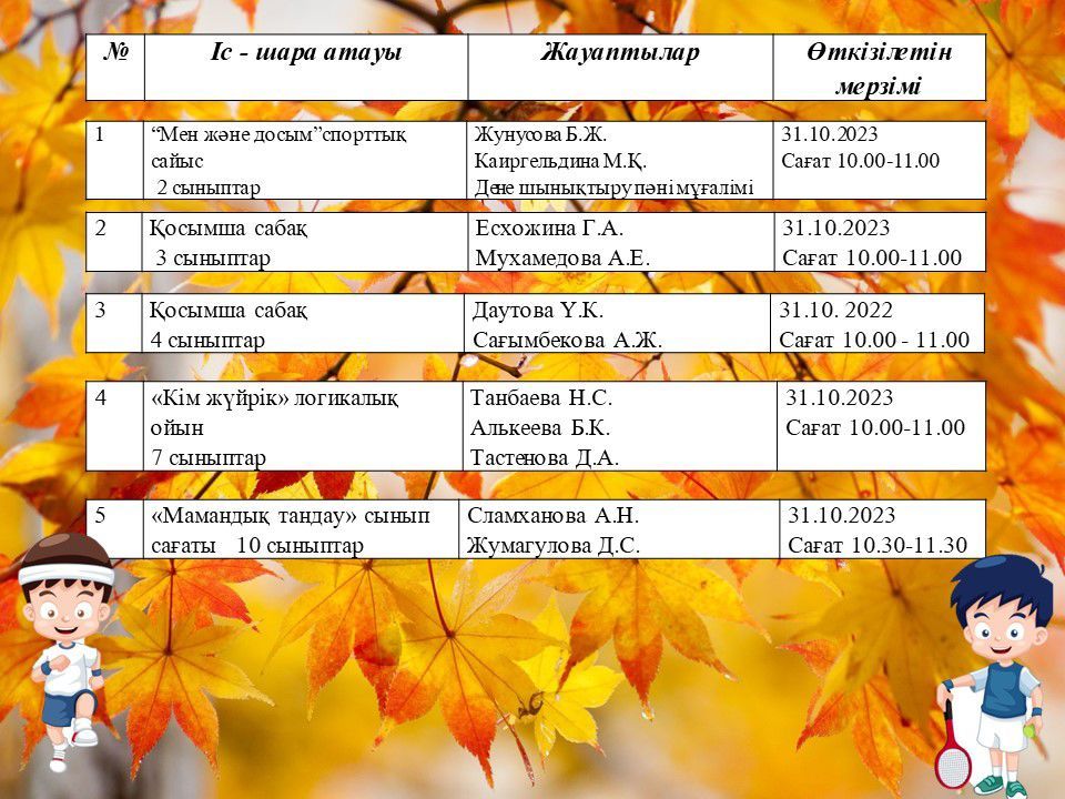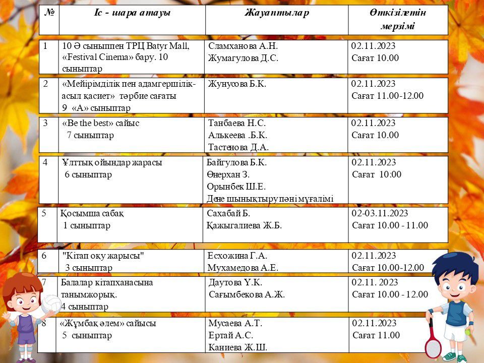 КҮЗГІ ДЕМАЛЫС кезіне жоспарланған іс-шаралар 2023 – 2024 оқу жылы