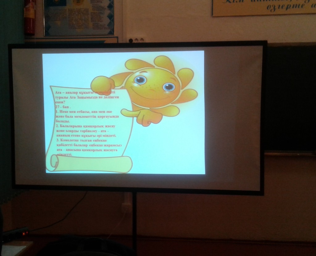 23 қараша күні мектебімізде бастауыш сыныптар арасында «Сен өз құқығынды білесің бе?» атты сынып сағаты өткізілді. 3 «а» және 4 «а» сыныптарында сабақ викторина түрінде өтті. Оқушыларға қызықты сұрақтар қойылды, әр бала өз құқықтары туралы пікір таласқа белсене қатысты. Әр баланың өз міндеттері мен құқықтары болатынын жақсы түсінді. Әр сыныпта сабақ өте мағыналы өтті. 20161123_080015 20161123_080351 20161123_080051 20161123_08010120161123_08042120161123_080308