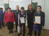 Қылмыскерді тұтқындауда және қылмысты әшкерелеуде белсенділік танытқаны үшін Павлодар қаласының ІІБ Алғыс хатын алды. Сонымен қатар мектеп инспекторы Кисатова Махаббат Нарымбекқызы да осы ұрыны ұстауға үлес қосқаны үшін, қалалық білім беру бөлімінің Алғыс хатымен марапатталды.