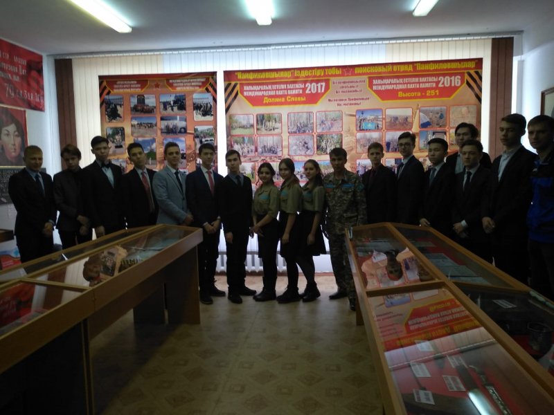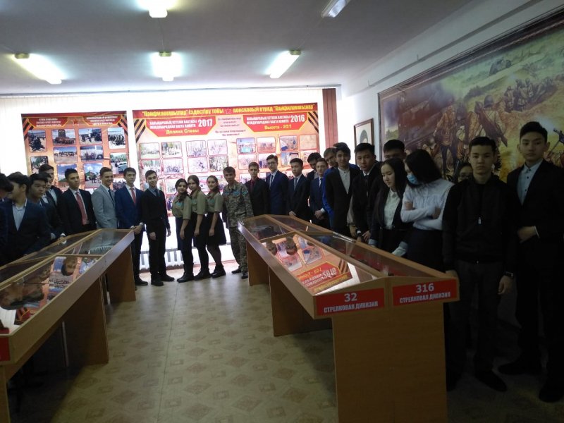 Экскурсию в Музей Боевой Славы, носящий имя Героя Советского Союза генерала И. В. Панфилова провели экскурсоводы музея: Иванова Яна,Жданова Руфина,Кравцова Арина.