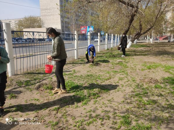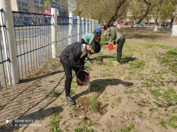 Экологиялық білім беру апталығы аясында экологиялық сананы табиғатқа тәрбиелеу мақсатында түлектер мектеп аумағын абаттандырды.
