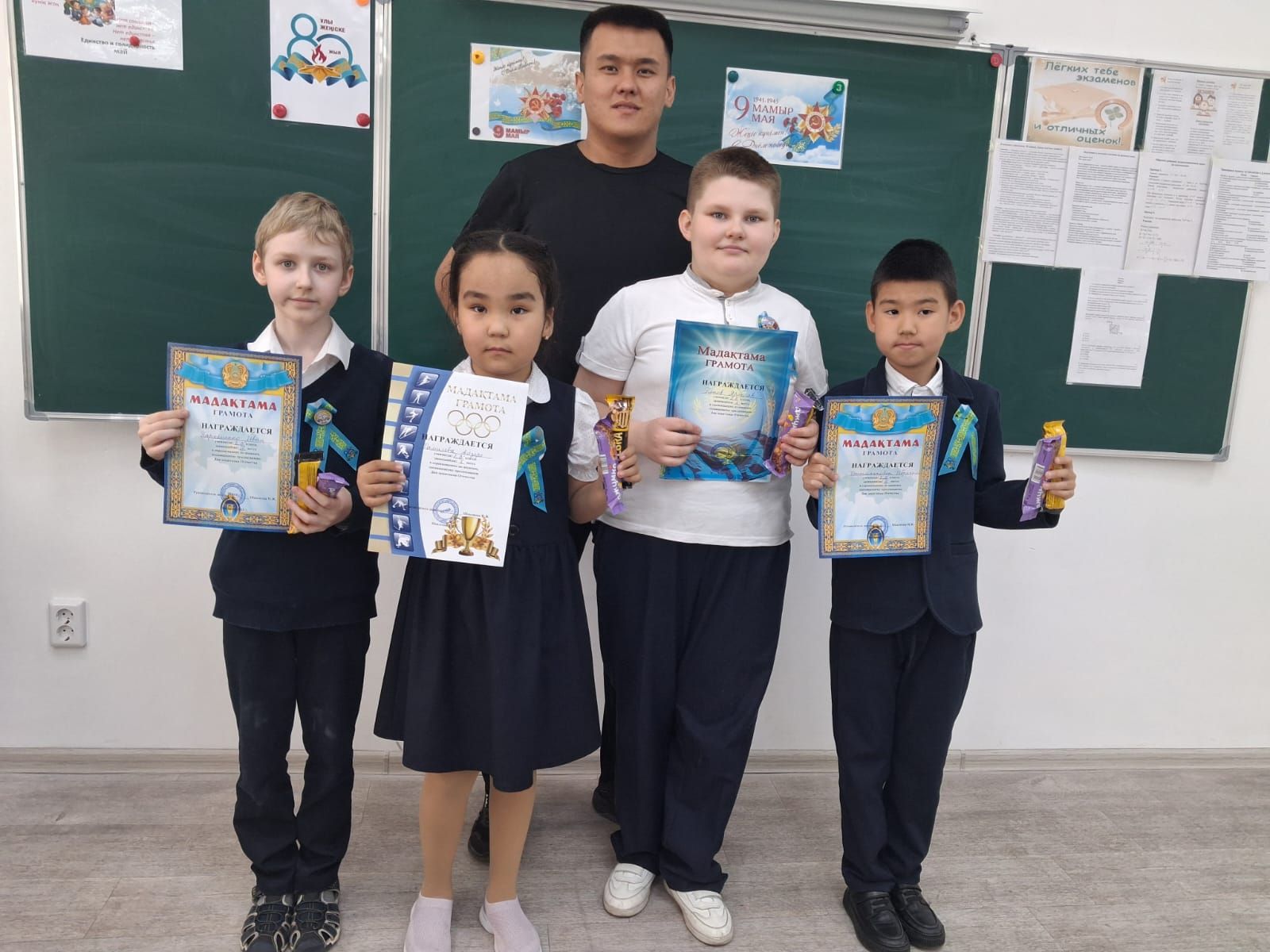 08.05.2025 ж. Біздің мектебімізде Отан қорғаушылар күніне орай "Дойбы" спорттық ойыны түрінен мектепішілік жарысы өтті. Жеңімпаздар мадақтамалармен және тәтті жүлделермен марапатталды.