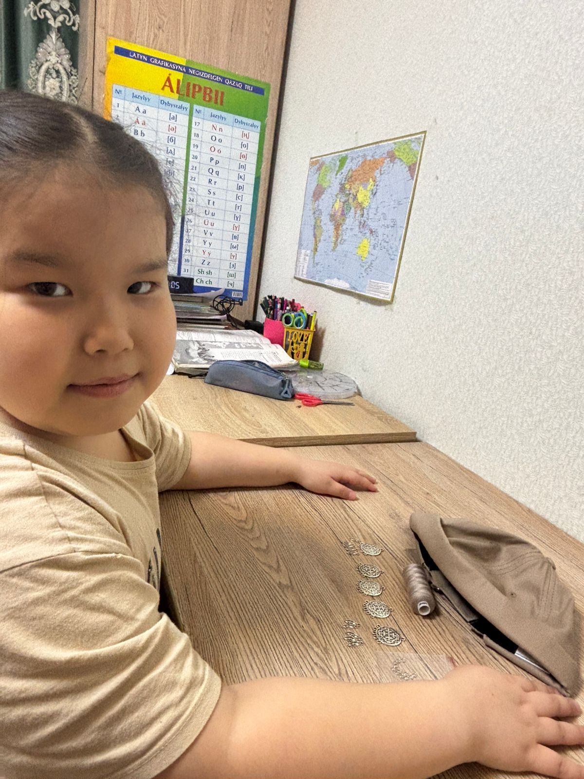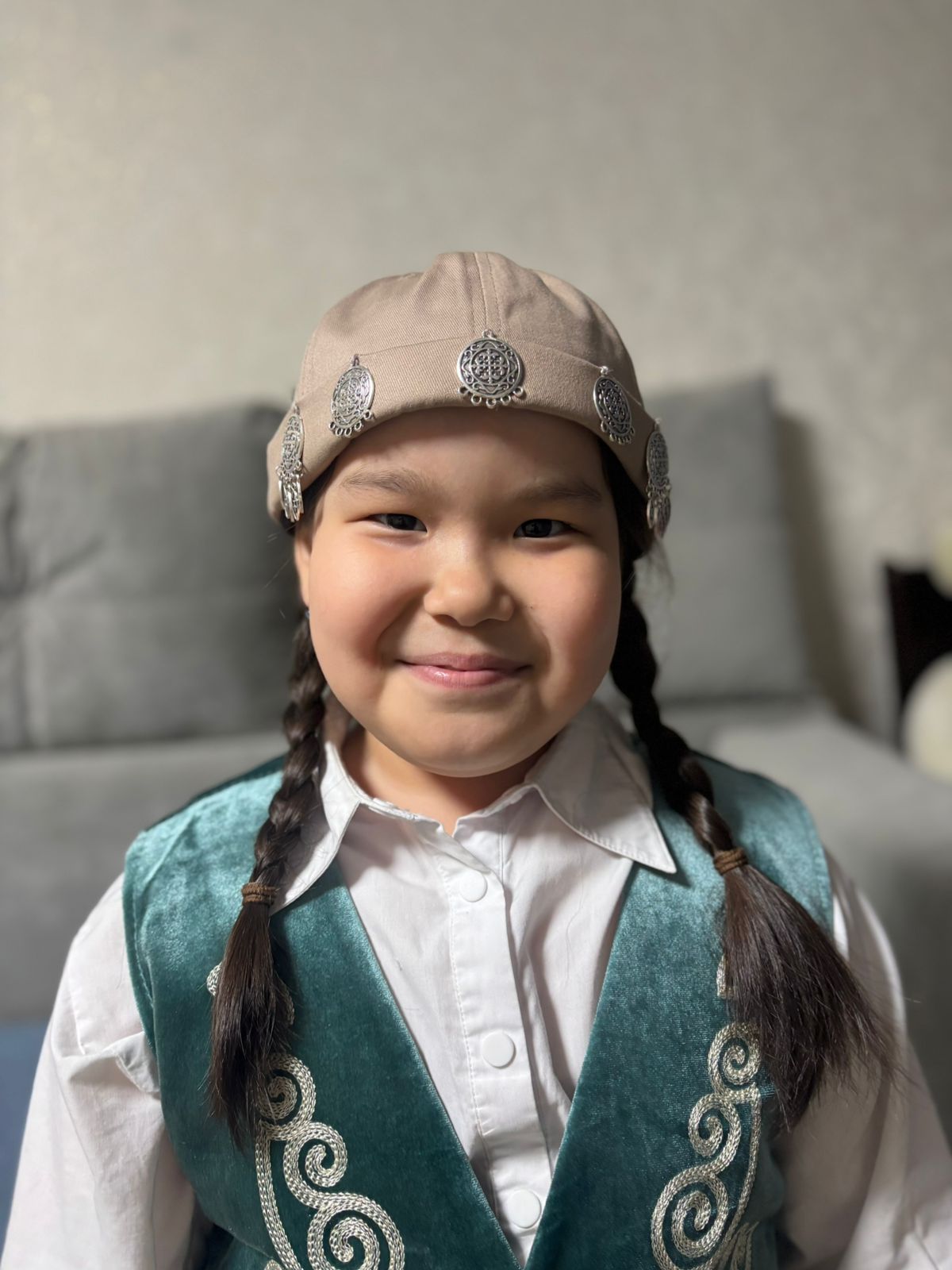 Айтчанова Айзере , 2 «Б» сынып оқушысы, «Ұлттық Style» облыстық жобасы аясында этно-бас киімдер дайындау байқауына қатысуда.