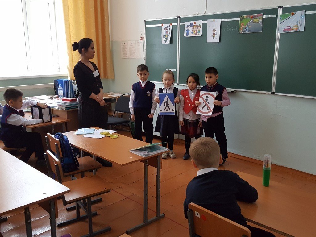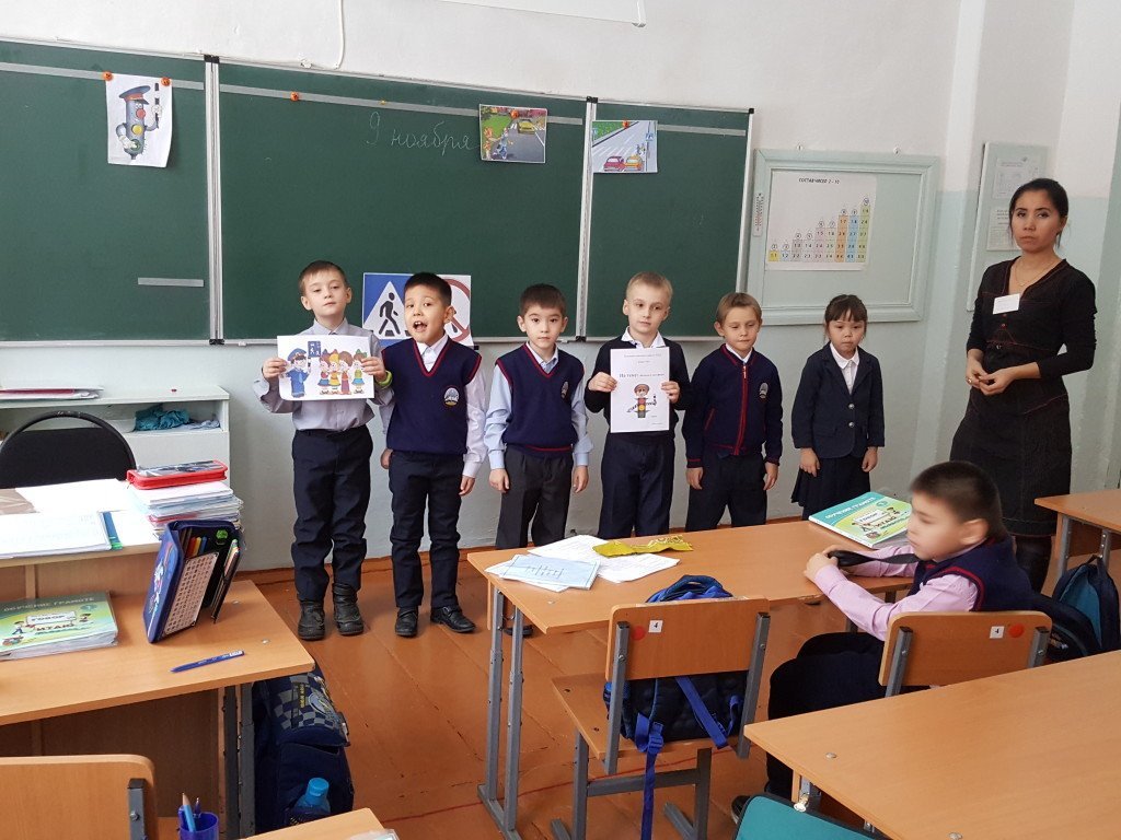 "Бағдаршамда қонақта" 1«А сыныбында "Бағдаршамда қонақта" тақырабына сынып сағаты өтті.Сабақ ойын түрінде өтті.Балаларға жол үстінде болатын проблемалық жағдаяттар ұсынылды, ребустар мен жұмбақтар шешті.Сабақ жол ережелері туралы мультфильм көрумен аяқталды. Сынып жетекшісі Кумарова Г.А
