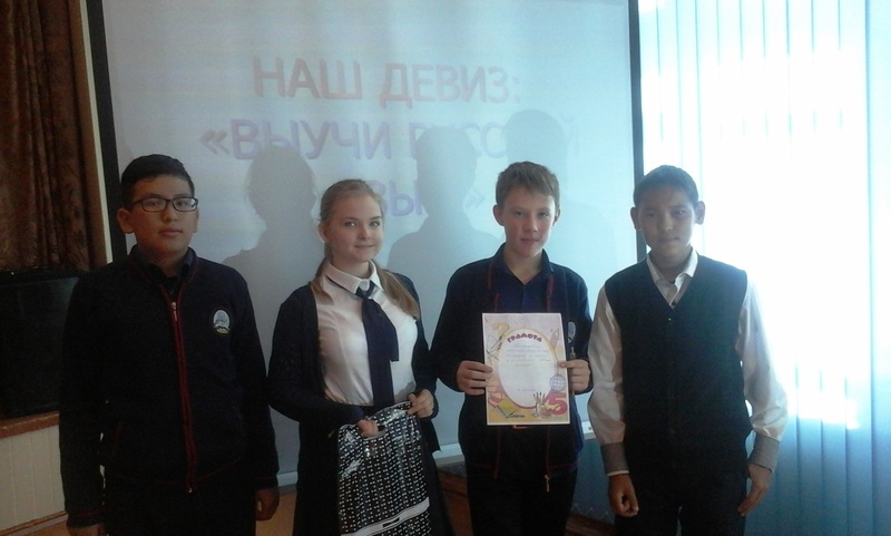 В рамках месячника, посвящённого Дню языков Казахстана, 16 сентября среди учащихся 7-ых классов прошла интеллектуальная игра «Юный филолог». Цель данного мероприятия: привить интерес к русскому языку, раскрыть многообразие и богатство русского языка, формировать умение применять знания в условиях викторины, воспитывать чувство дружбы и взаимопомощи. Учащимся было предложено разделиться на две команды, придумать название, эмблему и девиз. Участники игры продемонстрировали ловкость, сообразительность, а главное – хорошее знание русского языка. Викторину комментировало и оценивало жюри, состоящее из учителей-филологов и классных руководителей. Это была интересная встреча. Поздравляем победителей! Қазақстан халықтары тіліне арналған айлық шеңберінде 16- қыркүйек күні 7-ші сынып оқушылары арасында "Жакс филолог" атты интеллектуалды ойын өтті. Шараның мақсаты: орыс тіліне қызығушылық сезімін ояту,орыс тілінің жан - жақтылығымен байлығын ашу, жұмбақ ойын жағдайында өз білімін қолдана алу біліктілігін қалыптастыру,достық пен өзара көмек көрсету сезімін тәрбиелеу. Оқушыларға екі командаға бөліну, командаға атау және девиз ойлап табу ұсынылды, Ойынға қатысушылар ептілік пен ұшқырлық,ең бастысы орыст тілінен білімдерін көрсете білді. Жұмбақ ойынды әділқазылар алқасы сараптап, бағалады.Әділқазылар құрамы :мұғалім филологтар мен сынып жетекшілері болды.Бұл қызықты кездесу болды.Жеңімпаздарды құттықтаймыз!