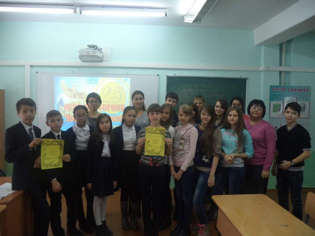 В целях формирования казахстанского патриотизма и развития познавательной и творческой активности учащихся 4 ноября в стенах школы прошла игра-викторина «Лидеры 21 века» среди учащихся 6-х классов. Игра была посвящена юбилейной дате – 25-летию со дня обретения Независимости Республики Казахстан. Викторина включала в себя 5 этапов: «Приветствие», «Байга», «Путешествие по столице», «Полиглот» и этап, посвященной международной выставке ЭКСПО-2017, «Мы проводим ЭКСПО».