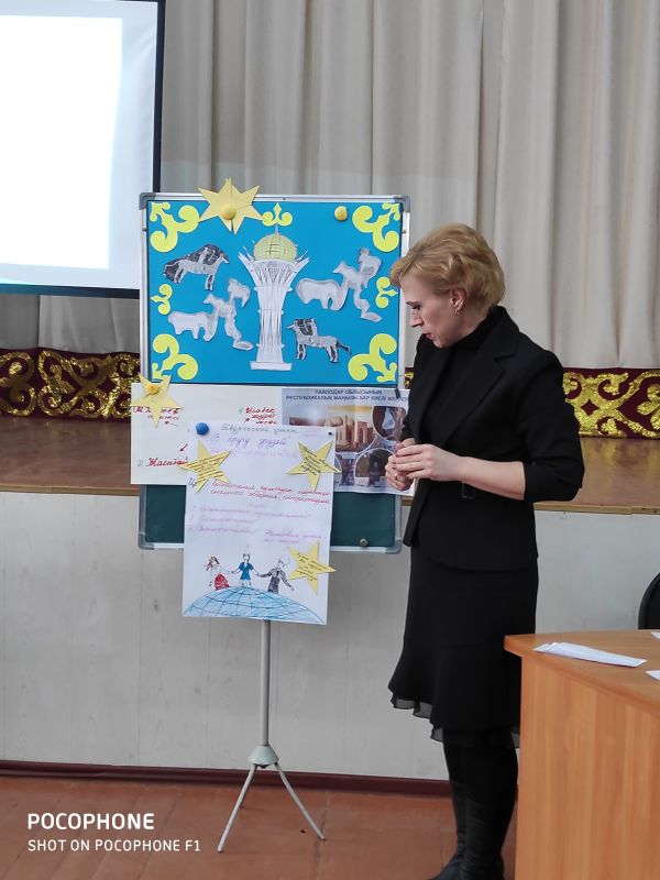 1 қарашада мектепте «Рухани жаңгыру» бағдарламасының тұжырымдамалық негіздері бойынша білім беру үрдісіне қатысушылардың ақпараттық кеңістігін кеңейту мақсатында «Рухани жаңғыру» бағдарламасын іске асыру шеңберінде білім беру үдерісіне қатысушылардың ойларын жаңғырту »педагогикалық кеңесі өтті. Мұғалімдер кеңесінің жұмысы мектеп шығармашылық ұжымдарының қатысуымен басталды. Оқушылардың шығармашылық жұмыстарының көрмесі ұйымдастырылды.