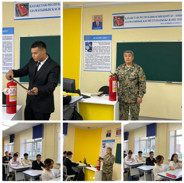 Бүгін АӘТД мұғалімі жоғары сынып оқушыларына "Өрт қауіпсіздігі" тақырыбна әңгіме өткізді. Мақсаты: қауіпсіздік техника, өрт қауіпсіздігі ережелері туралы білімдерін қалыптастырып, сонымен қатар терроризм, экстремизм туралы терең түсінік беру, зардаптарын