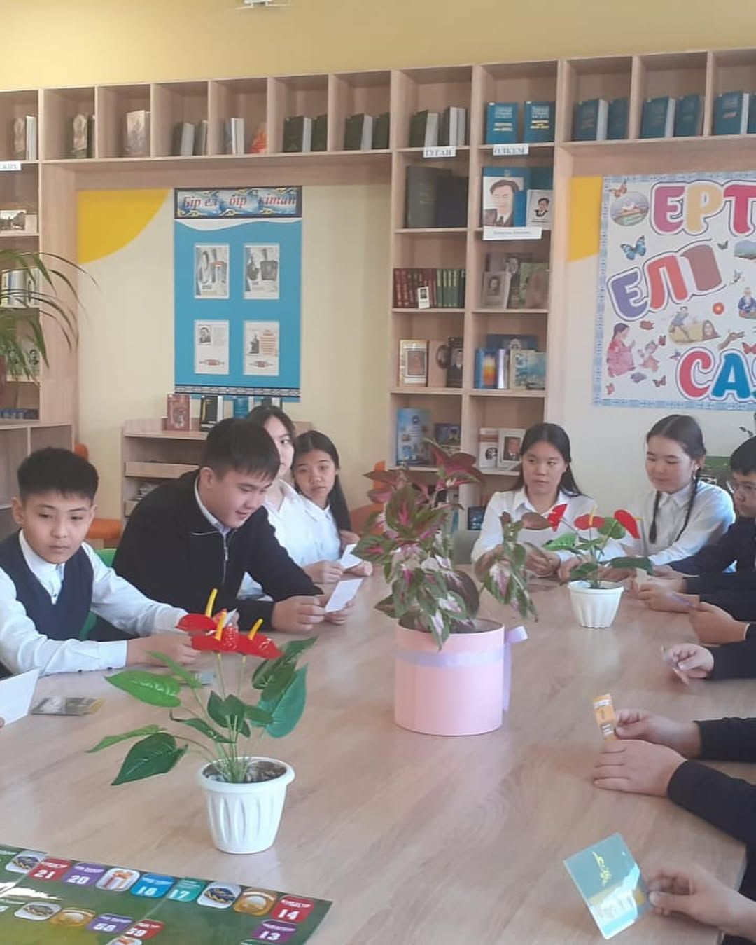23 сәуір – Халықаралық кітап күніне орай, кітапханамызда оқушылармен монополия ойын алаңында”Сан сұраққа саяхат” атты сұрақ жауап ойыны өткізілді. Ойын алаңында, “тарихи тұлғалар”, жұмбақтар, мақал-мәтелдер, салт-дәстүр және Қазақстан тарихы бойынша сұрақтар қатыстырылды. Оқушылар ойын алаңында қызығып сан сұрақтардың жауаптарын тапты.