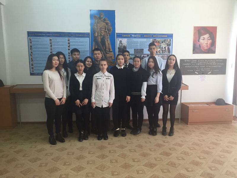 Бүгін сәуір айының 6 жұлдызында біз 10 «А» сынып оқушылары АӘД мұғалімі Машгутов Р.К. №14 жалпы орта білім беру мектебінің әскери мұражайына бардық. Туған жерімізде борышын ақтаған ардагерлермен таныстық. Соғыс кезіндегі қолданылған қарулар, ыдыс – аяқтар, бас киімдер, Псков ауданында құрылған «Батырлар жолы» мемориалы туралы бейнефильм тамашаладық. Бүгінгі күн өте қызықты болды.