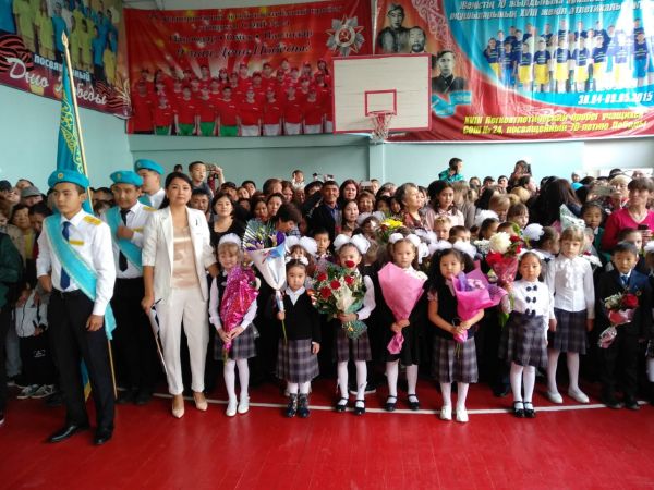 Директор школы Рахимгожина Н.Ш. открыла торжественную линейку, посвященную Дню Знаний, приветственной речью, поздравив учителей и учеников, родителей.