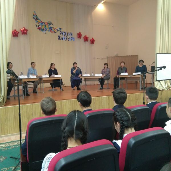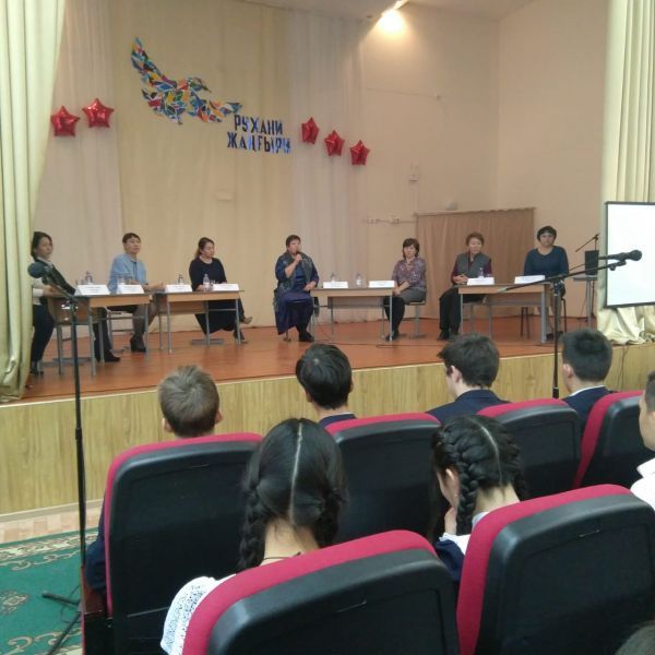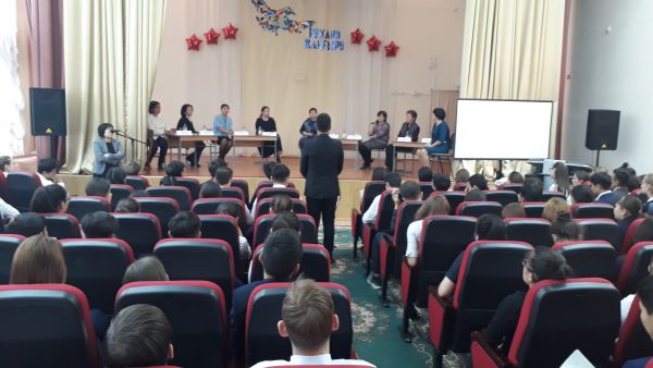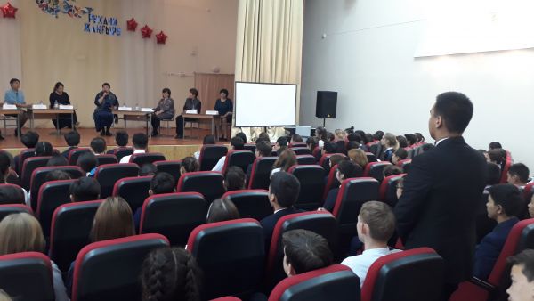 В нашей школе 18 октября прошла пресс-конференция. Администрация школы отвечала на интересующие проблемные вопросы учащихся старших классов. Вопросы учащихся не должны были повторяться. Вопросы учеников начинались следующей фразой: «Фамилия, имя, класс. Темы были затронуты самые разные : о значимости программы «Рухани жангыру, об интеллекте современной молодежи, о микрокомфорте в школе, о взаимоотношений учащихся и учителей, о выборе профессии и многие другие. В начале мероприятия ЗДУВР Казимова А .Ш. призвала всех присутствующих соблюдать тишину. С приветственным словом к участникам пресс – конференции обратилась директор школы Рахимгожина Н.Ш. Во вступительном слове она объявила о целях пресс-конференции и представила администрацию школы. Далее был оглашен регламент работы и в заранее оговоренном порядке выступили ученики 9-11 классов.