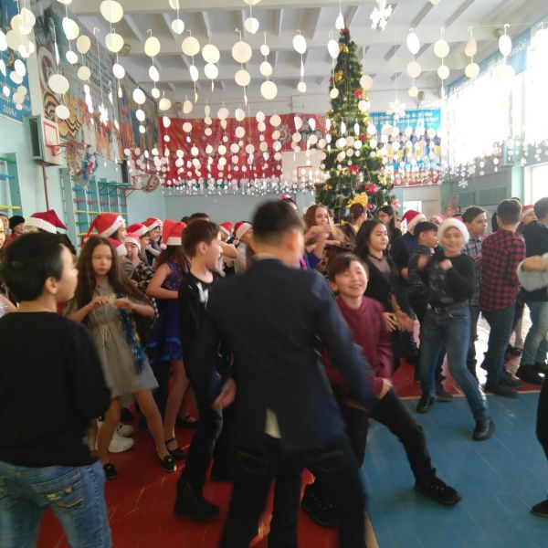 С любимыми мультипликационными героями повстречались учащиеся начальной школы. Заводная Маша и Миша, свинка Пепа, Волчок, Барбоскины, монстры Айси и Дарси были с ребятами на протяжении всего утренника. Маша с ребятами водила хороводы, танцевала зажигательные танцы, загадывала загадки. Песни, смех, игры были в течение всего утренника. Дед Мороз и Снегурочка поздравляли ребят и конечно же дарили подарки. Маскарад был подготовлен молодыми педагогами и старшеклассниками школы. Для учащихся 5-7 классов был проведен вечер «Музыкальный батл». Закончился вечер праздничной дискотекой.