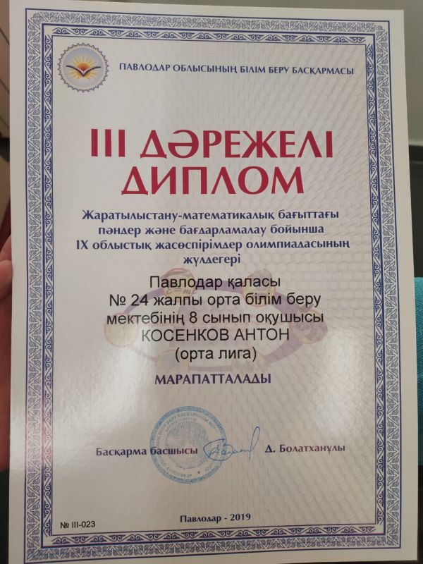 15 ноября прошел областной тур юниорской олимпиады по географии ,ученик 8 "Г" класса Косенков Антон занял третье место. Подготовила победителя учитель географии Шуленбаева А.С.  Поздравляем нашего победителя!!!