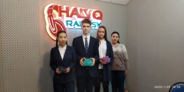 Сегодня 29.01.2020 года , ученица 9 "В" класса Бекмаганбетова Аяулым приняла участие в прямом эфире Халык радио на передачи "Атамекен", где отвечала на вопросы викторины по истории Казахстана, посвященной 175 летию Абая Кунанбаева. Аяулым показала отличные знания и была награждена призом! Поздравляем!!!