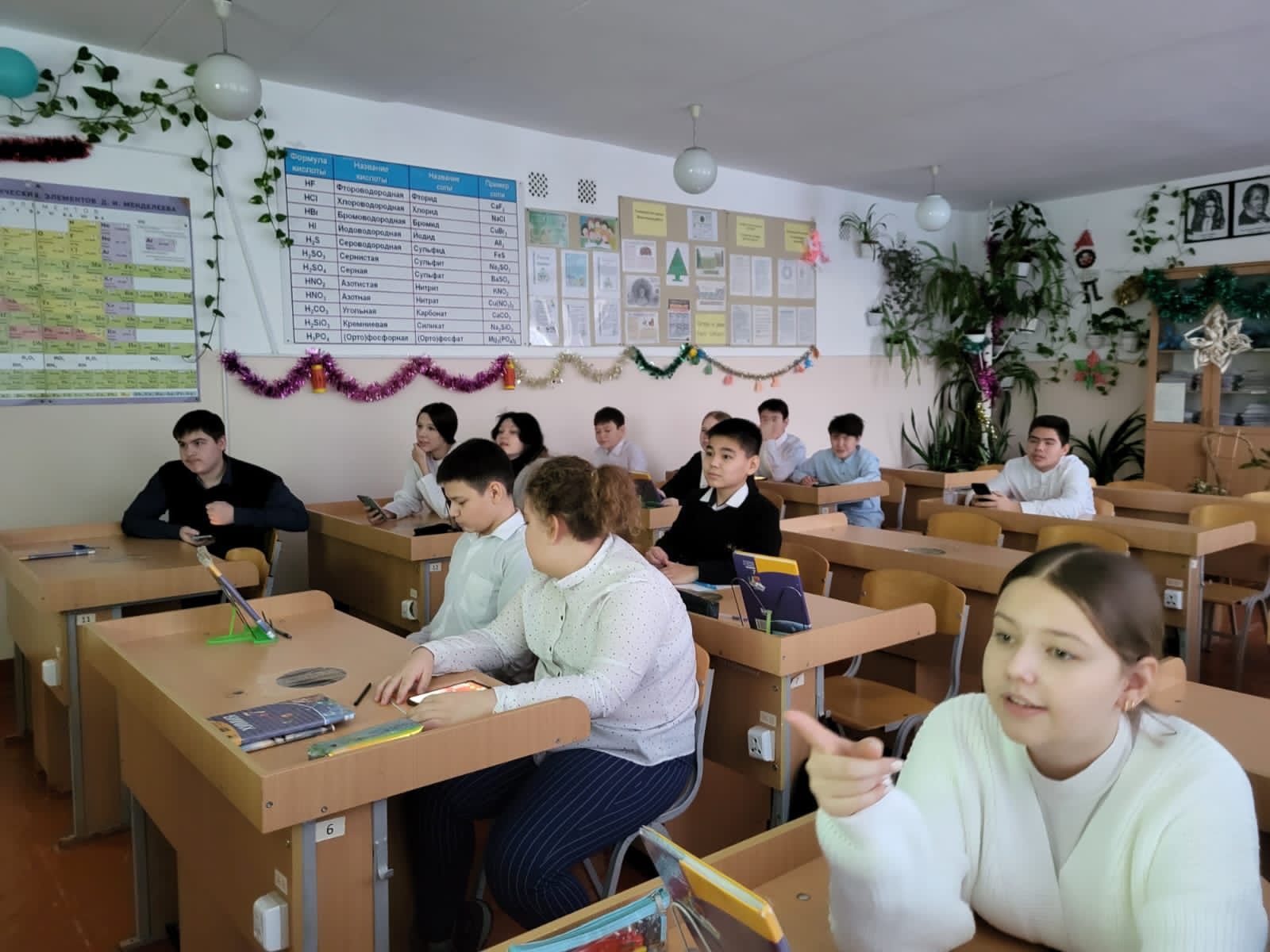 По плану внеклассных мероприятий на зимних каникулах в СОШ 27 г. Павлодара для 7-х классов проведена игра «Юный химик». Ребята вспомнили химические элементы и правила ТБ в кабинете химии; поработали с химической посудой; отгадывали загадки; поиграли в Kahoot (вопросы по П СХЭ на казахском и английском языках); посмотрели опыты; на скорость надували шары, проверяя объем лёгких. Было весело и познавательно!