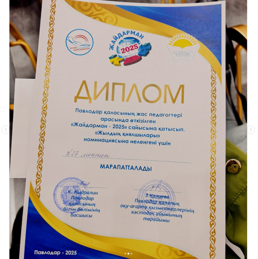 Біздің мектебіміздің жас педагогтерінен құралған “Күлмесең, қой!” жайдарман тобы Павлодар қаласының жас педагогтері арасында өткізілген «Жайдарман - 2025» сайысына қатысып, «Жылдың қиялшылары» номинациясына ие болды. Құттықтаймыз!