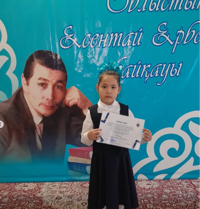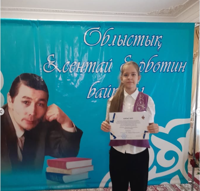 Бүгін 2025 жылдың 17 қазанында Бұхар Жырау мұражайында балалар ақыны Есентай Ерботинның 85 жылдығына орай жас орындаушылар арасында мәнерлеп оқу байқауы өтті. Мектебімізден 3”Ә” сынып оқушысы Кабылкаир Гаухар және 5”А” сынып оқушысы Павлова Анастасия қатысты.