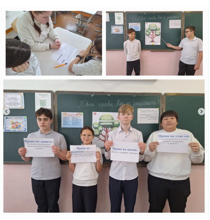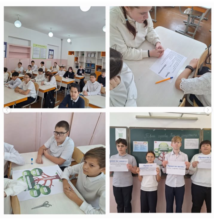 Оқушылар Бала құқықтары туралы конвенцияның негізгі ережелерін еске түсіріп, нақты өмірлік жағдайларды талдады және өз мүдделерін заңды түрде қорғауды үйренді!