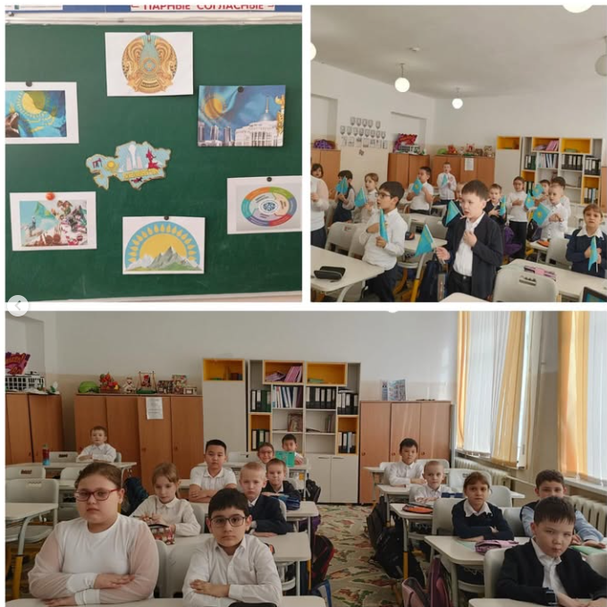 Во вторых классах прошёл классный час на тему: « Государственные принципы и общенациональные ценности Республики Казахстан».