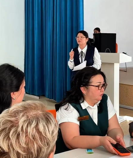 • Жапарханова Махабат Кабаровна, сынып жетекшісі, «Тәрбие тәуекелдерін басқару: әрекет етуден алдын алуға көшу» тақырыбында сөз сөйледі. Ерекше назар реактивті шаралардан проактивті тәсілге көшуге, яғни тәрбиелік үдерістегі ықтимал қиындықтарды дер кезінде анықтап, алдын алуға аударылды.