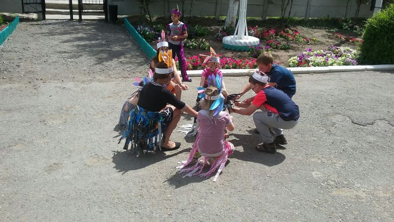 Мероприятие «День индейца» проходило на свежем воздухе,организованы игры по станциям.Детям заранее было дано домашнее задание( подготовить костюмы,танец).Участники с интересом выполняли задания,активно участвовали во всех конкурсах.В ходе мероприятия ребятам предстояло пройти сложный путь и добыть волшебный кристалл.На каждой станции их ожидали шаман,обезьянка,колдун-Барадун.В заключительной части праздника ,каждый отряд получил грамоту за участие в празднике.