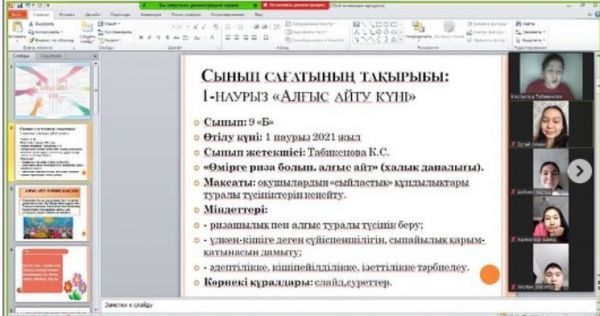 Бүгін, яғни 2021 жылдың 1 наурызында 9 «Б» сыныбында 1-наурыз «Алғыс айту күні» тақырыбында тәрбие сағаты өтті. «Өмірге риза болып, алғыс айт» деп дана халқымыз айтпақшы, оқушылардың «сыйластық» құндылықтары, ризашылық пен алғыс, үлкен-кішіге деген сүйіспеншілік, сыпайылық қарым-қатынас, әдептілік, кішіпейілділік, ізеттілік туралы түсініктерін кеңейту мақсатында өткізіліп отырған шараның оқушыларды тәрбиелеуде алатын орны ерекше деп ойлаймын. Сынып жетекшісі: Табикенова К.С.