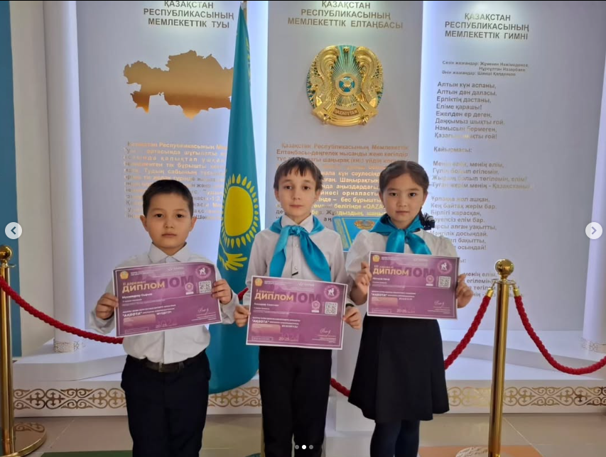 Мектебімізде дарынды балаларды марапаттау мақсатында бастауыш сынып оқушыларының саптүзу өткізілді. 2-7-сынып оқушыларының "Зерде" Республикалық зерттеу жобалары қалалық кезең жүлдегері Ахметов Султан 3 орын, облыстық кезең жүлдегері Аблхасан Іңкәр, "Ақбота" зияткерлік олимпиадасының жүлдегерлері 1 орын жеңімпазы Атыханов Ахметхан, 2 орын Рахимов Мансур, Мұхамедияр Сырым, 3 орын Аблхасан Іңкәр, мектепшілік пән олимпиадасының қоғамдық-гуманитарлық бағыт бойынша 2 орынға иеленген оқушылар Аблхасан Іңкәр, Есимханова Балайым мақтау қағаздармен марапатталды.Жетекшісі: Алмагуль Бейсембаевна Адамова.ҚҰТТЫҚТАЙМЫЗ!