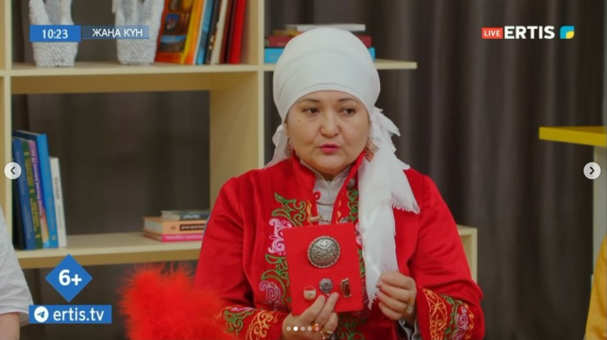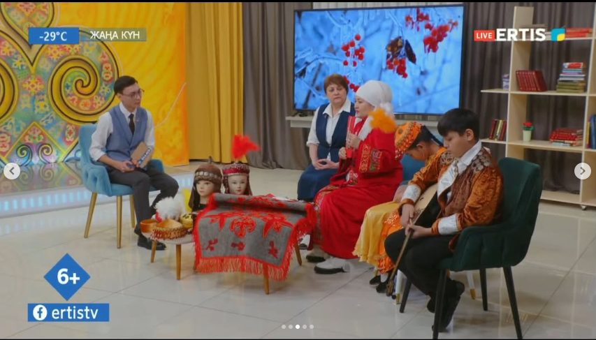 Мектеп басшысының тәрбие ісі жөніндегі орынбасары Л.К. Сабикова Даналық мектебі аясындағы “Әжелер клубының” мүшесі Г. Акаубаева апай “Ертіс” арнасының қонағы ретінде сұхбатқа шақырылды. Сұхбат барысында Гүлайым апай өз қолөнер шеберлігі, ұлттық құндылықтарды дәріптеу жолындағы еңбегі, жас ұрпаққа өнеге боларлық тәрбиелік тәжірибесі туралы кеңінен әңгімеледі. Сонымен қатар, “Әжелер клубының” жұмысы, оның мектеп өміріндегі және оқушылар тәрбиесіндегі маңызы сөз болды. Бағдарлама көрермендеріне ұлттық қолөнердің қыр-сырын таныстырып, салт-дәстүрді сақтау мен насихаттаудың маңыздылығын жеткізе білді.