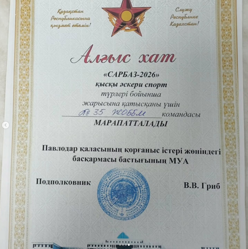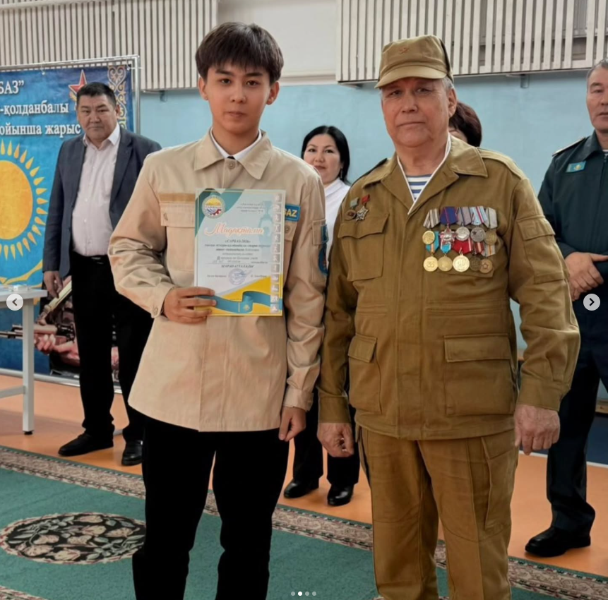 "Жас Сарбаз" әскери-қолданбалы спорт түрлері бойынша жарысқа мектебіміздің 10 Ә сынып оқушылары: Ахметов Ильдар, Жасулан Аяулым, Елеубаев Азат қатысып, жүлделі 2 орынды иеленді.