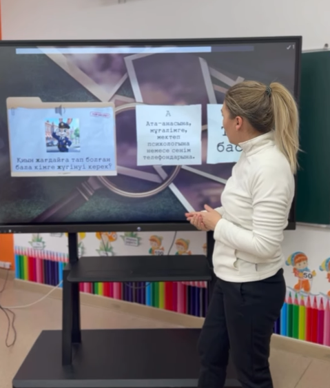 Заң және тәртіп айлығы аясында мектебіміздің аналар клубы мен Павлодар қаласы ПБ қоғамдық қауіпсіздік бөлімінің тұрмыстық зорлық-зомбылыққа қарсы күрес бөлімшесінің инспекторы полиция капитаны Абжанова Айзат Толегенкызы аналар клубының мүшелерімен кезбесу