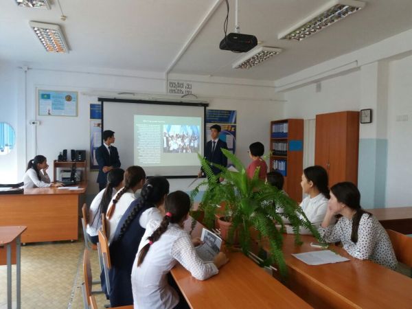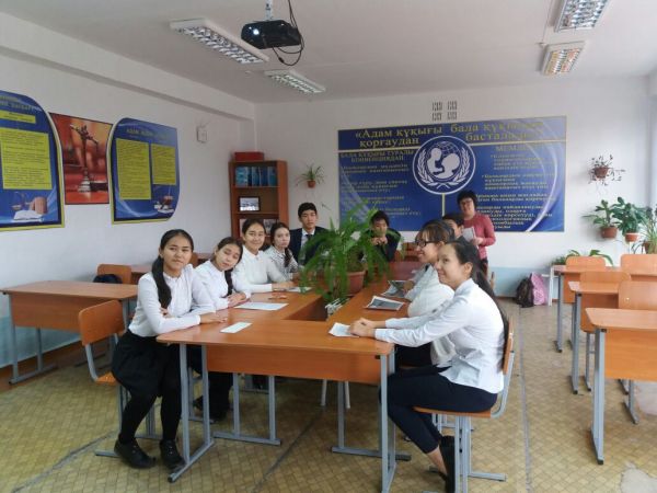 20 Oct among 9 classes in "Adal urpak" under the leadership Sharbakbaeva A.A held a round table "Zhastar zhane kogam".The aim was to explain students about their behavior and ability to еxpress their thoughts.Each class defended its prepared presentation.Was read the poem of M.Zhumabayev "Men zhastarga senemin" , and after its expressive procitenie each participant expressed his opinion. "We believe that the future is in the hands of young people".