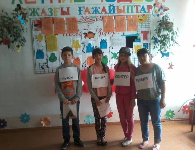 Сегодня в пришкольном лагере «Летние чудеса» утренняя линейка произвела на ребят большое впечатление. Подготовленная команда спортсменов торжественно открыли спартакиаду.После линейки мы посетили «Планетарии 3Д»,где смотрели фильм «Летающие динозавры». Так же играли в спортивные игры «Перестрелка» и «Три мяча». Победители были награждены грамотами. Посещение бассейна «Нептун» подняло настроение и укрепило здоровье детей в этой жаркий день. Очень поучительной была в этот день игра по станциям «Космическое путешествие» и «Готовность №1». Дети узнали много нового и интересного о планетах Солнечной системы.