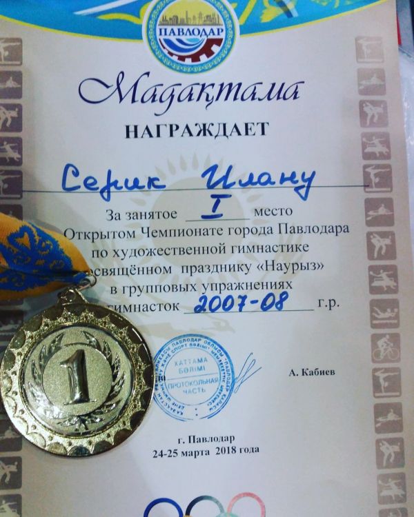 Поздравляем Серик Илану за занятое первое место на открытом чемпионате города Павлодара по художественной гимнастике! Молодец!