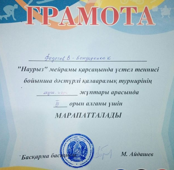 В период с 20 по 23 марта в городе Павлодаре в СК ”Баянтау” прошел традиционный международный турнир по настольному теннису, посвященный празднованию Наурыза. В турнире приняли участие свыше 150 человек: мужчины и женщины. Ведущие спортсмены регионов Казахстана и Российской Федерации. Соревнования проводились в личных и парных разрядах. В мужских парных соревнованиях отличился учитель физической культуры СОПШЭН#36 Федотов В.А.,заняв 3 место! Поздравляем!
