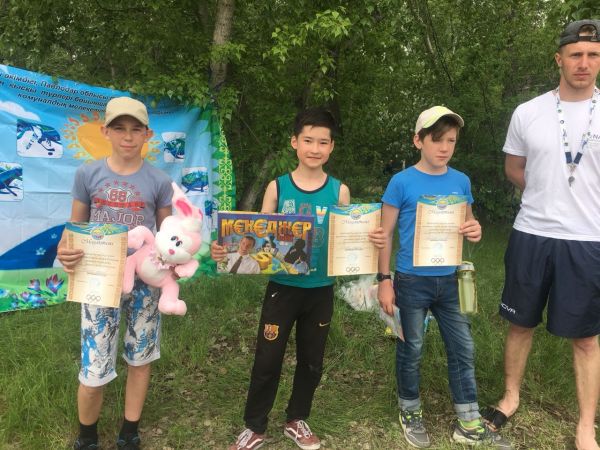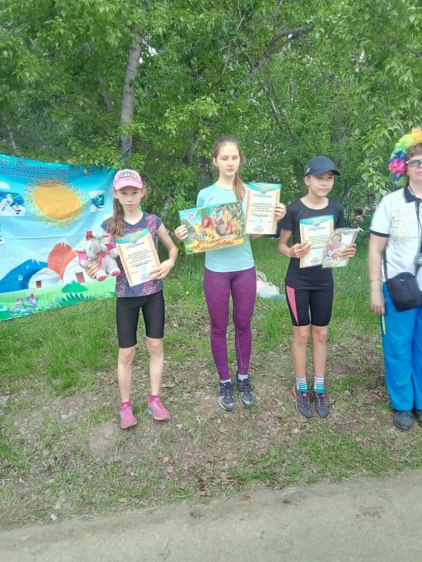 Ребята весело провели время, участвуя в различных конкурсах! А победителями они стали в легкоатлетическом кроссе на 1 км, в забеге в подъем и конкурсе скакалок!
