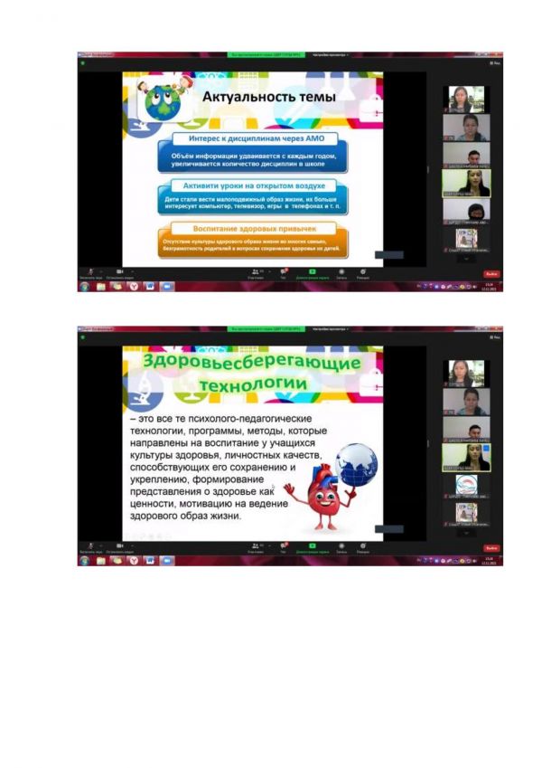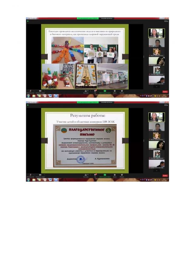 В ходе мероприятия выступили следующие педагоги нашей школы:ЗР ВР Заирова Б.К. с докладом на тему «Реализация принципов здоровьесберегающего обучения и воспитания – основа повышения здоровья детей, выполнения социального заказа общества», учитель ФК Аюпов А.С. представил тему «Здоровьесберегающие технологии на уроках физической культуры», руководитель центра «Семья» Лаврикова Н.Г. с темой «Сотрудничество семьи и школы – залог социального здоровья ребенка», координатор ЗОЖ школы Сарсекеева А.К. представила доклад «Работа координатора ЗОЖ по реализации программы ШСУЗ», психолог школы Ряснова Ю.В. с докладом на тему «Направления работы психолога по пропаганде ЗОЖ. Межведомственные взаимодействия», учитель начальных классов Садыкова Ж.К. с темой «Бастауыш сыныптарында денсаулық сақтау технологиясына негіздеп, оқу тәрбие үрдісін ұйымдастыру»,учитель географии Паскарь А.Г. с темой выступления «Активный образ жизни на уроках здоровой географии».