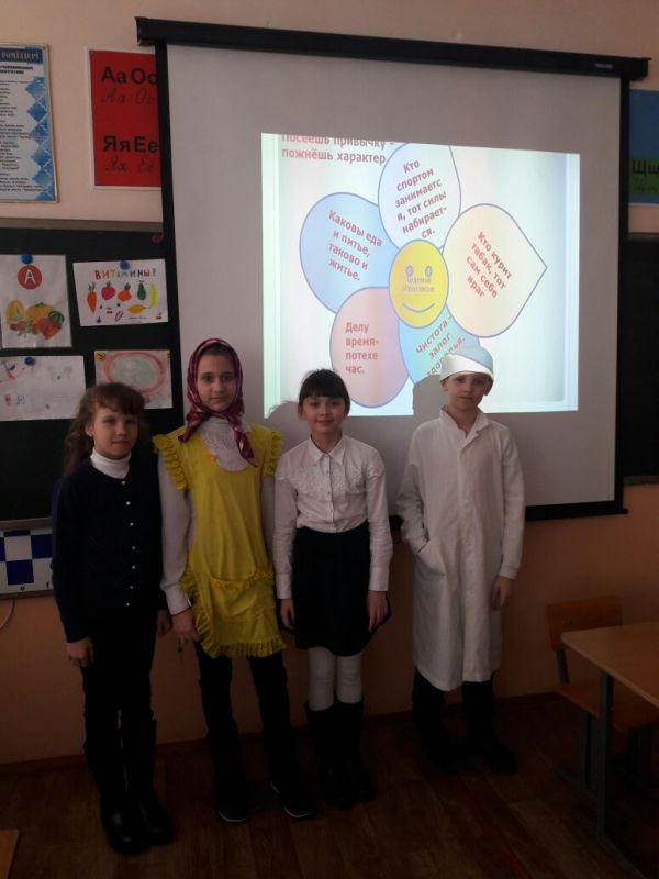 Учениками 4 «А» класса совместно с учителем Филипушко Екатериной Владимировной была подготовлена викторина «Быть здоровым - здорово!». Ребята подготовили сценку, стихи, активно отвечали на вопросы. Все пополнили багаж знаний. Было очень весело.