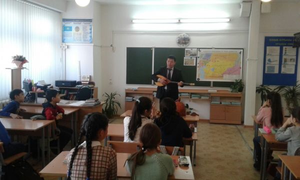 Мероприятие проходило на факультативном курсе “История края” по теме “Духовная культура казахского народа”. Провел занятие руководитель музея им. Майры Шамсутдиновой города Павлодара Рахимов Ерлан Олжайулы, который рассказал о музыке, особенностях казахской музыки, инструментах казахского народа, в том числе используемых в Павлодарской области, искусствоведах- музыкантах, вышедших с Павлодарского края