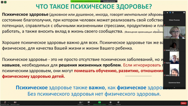 Zoom-конференция на тему "Психическое здоровье детей и подростков"