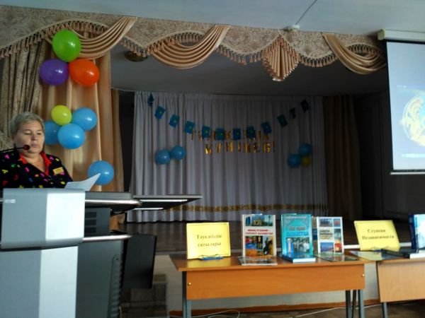 Сегодня в актовом зале СОШ№43 заведующей школьной библиотекой Шуваловой Т.Ю. и библиотекарями ЦГБС Мухутдиновой Н. и Мамбетовой Л.С. был проведен информационный урок, посвященный государственному празднику РК - Дню Независимости. Учащиеся 8 «А», «Б», «В»классов с интересом выслушали библиотекарей, посмотрели видео, ответили на вопросы викторины.