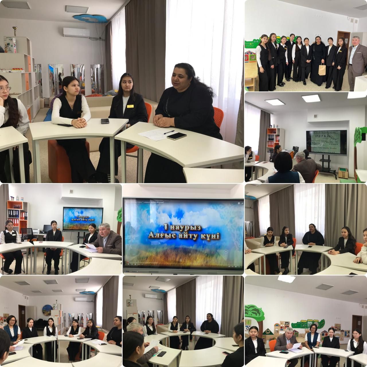 Алғыс күнін мерекелеу аясында тарих пәнінің мұғалімі Сулекеев Д.К «Қазақ халқына мың алғыс» атты дөңгелек үстел өткізді. Басқа ұлт өкілдерінің қазақ халқына айтып жүрген алғыстары мен өзара көмектері әңгіменің басты тақырыбы болды. Іс-шараға қонақ ретінде күрд ұлтының өкілі Мамедова Динара болды. Қонақ қазақ халқының қиын-қыстау кезеңде оның отбасына қалай көмектескені туралы әңгімелеп, қазақтың қонақжайлылығы мен мейірімділігі туралы өз әсерлерімен бөлісті. Дөңгелек үстелге қатысушылар тыңдағандарын белсенді түрде талқылап, сұрақтар қойып, өз ойларымен бөлісті. Бұл ұлтаралық қарым-қатынасты нығайтудағы алғыс пен өзара көмектің маңыздылығын тереңірек түсінуге мүмкіндік берді. Іс-шара өзге ұлт өкілдеріне толерантты көзқарасты қалыптастыруға және олардың мәдениеті мен дәстүрін түсінуге ықпал етті. Сондай-ақ Қазақстандағы ұлтаралық келісімді сақтау мен дамытудың маңыздылығын атап көрсетеді.