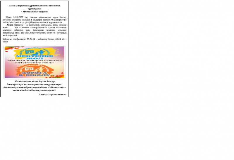 "Қауіпсіз мектеп автобусы" республикалық акциясы
