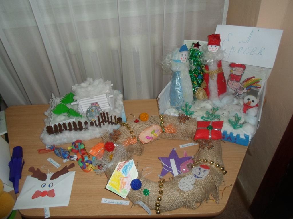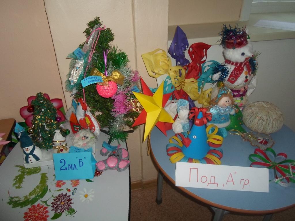 В преддверии празднования Нового года в нашем детском саду прошел конкурс на лучшую новогоднюю игрушку, сделанную своими руками детьми и их родителями. В конкурсе приняли участие все возрастные группы детского сада. игрушки были разделены на три номинации "Елочные фантазии", "Новогодний бал", "Самая большая игрушка". В первой номинации "Елочные фантазии" членами компетентного жюри были выделены следующие работы: Колодченко Кирилл "Елочка из шишек" (1 младшая группа), Клинк Настя "Зимняя сказка" "(2 младшая "Б" группа), Нурпеисов Ансар"Сани Деда Мороза" (средняя "А" группа), Бекк Марк "Петушок" (средняя "Б" группа), Морарь Кирилл "Новогодние шары" (средняя "В" группа), Щеглова Кира "Снежный ком", Колибаба Лера "Новогодняя ветка" (средняя "Г" группа), Мурат Дилара "Новогодний венок", Ахметов Ернар "Новый год" (старшая "А" группа), Козлянская Настя "Елочка" (старшая "Б" группа), Буженко Алина "Рождественский домик" (старшая "В" группа), Чуйко Ксения "Снеговик" (подготовительная "А" группа), Шестаков Матвей "Волшебный домик" (подготовительная "Б" группа), Сарсембай Мансур "Елочка", Хабибулла Самал "Новый год", Жанжигитова Амира "Елочка", Гусейнов Руслан "Петушок" (подготовительная "В" группа). Во второй номинации "Новогодний бал" были выделены группы, предоставившие на конкурс наибольшее количество поделок: первое место - подготовительная "В" группа - 27 поделок, второе место - подготовительная "Б" группа - 26 поделок, третье место - подготовительная "А" группа - 18 поделок. В третьей номинации "Самая большая поделка" первое место занял Киряхно Богдан (старшая "Б" группа) - "Снеговик", второе место - Фролов Ваня (средняя "Г" группа) - "Снеговик", третье место - Сарсембай Мансур (подготовительная "В" группа) - "Елочка". Все победители конкурса получили почетные грамоты от руководителя детского сада.