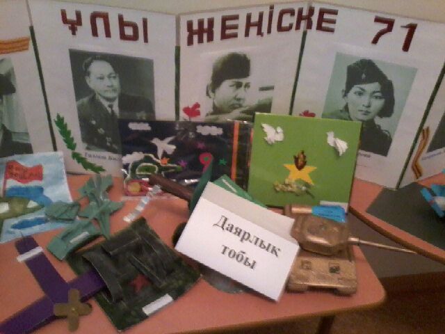 9 мамыр Ұлы Жеңіс күні қарсаңында балабақша төңірегінде «Біз Жеңістің ұрпақтарымыз» атты үлкен мерекелік іс-шара өткізілді. Мерекеге бүлдіршіндер мен бірге ата-аналарыда ат салысып қолдан келген көмектерін көрсетті. Балалар Жеңіс туралы ән шырқап, өлең оқып, би биледі ересек және даярлық топтарының балалары әдемі көрініс көрсетті. Бұл мерекеден бүлдіршіндеріміз жақсы әсер алды деп ойлаймыз. Сондай –ақ «Бейбіт елдің ұранымыз» атты бақша ішілік көрме ұйымдастырылды. Көрмеге ата-аналармен балалары қатысты IMG-20160506-WA0003IMG-20160511-WA0006IMG-20160511-WA0005