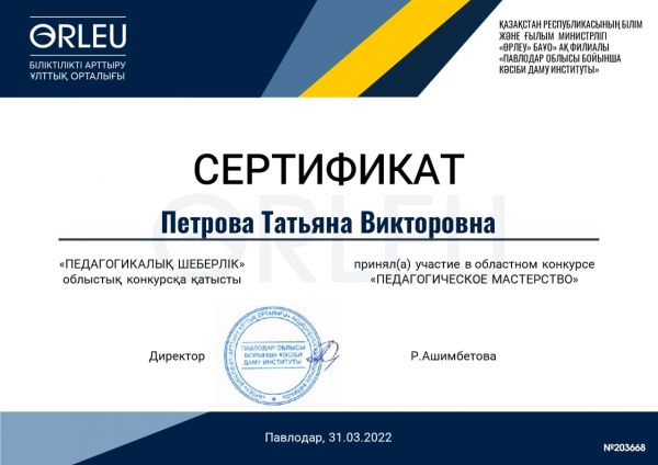 31 марта 2022 года подведены итоги областного конкурса «Педагогическое мастерство-2022», НЦПК «Өрлеу».