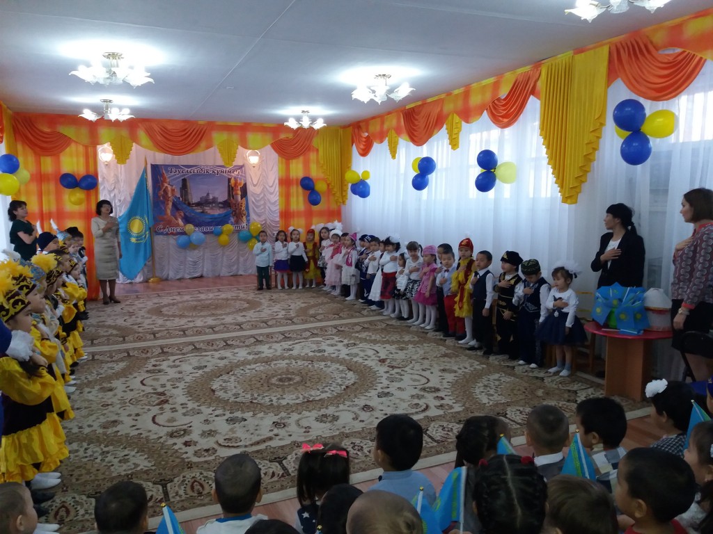 13-14 желтоқсан күндері балабақшамызда Тәуелсіздігіміздің 25 жылдық тойына арналған ертеңгілік өтті. Ән ұранымыз айтылды. Қонаққа "Алтын Адам" келіп балаларды қуантты. Балалар би билеп, ән шырқады. Жаса, Қазақстан! 20161213_093828 20161213_094420 20161213_094632 20161213_100014-1