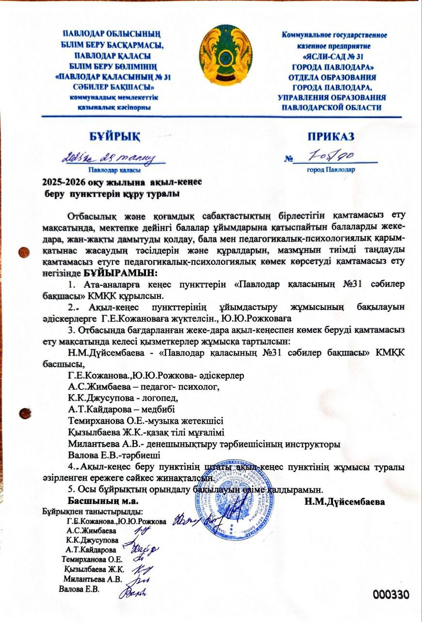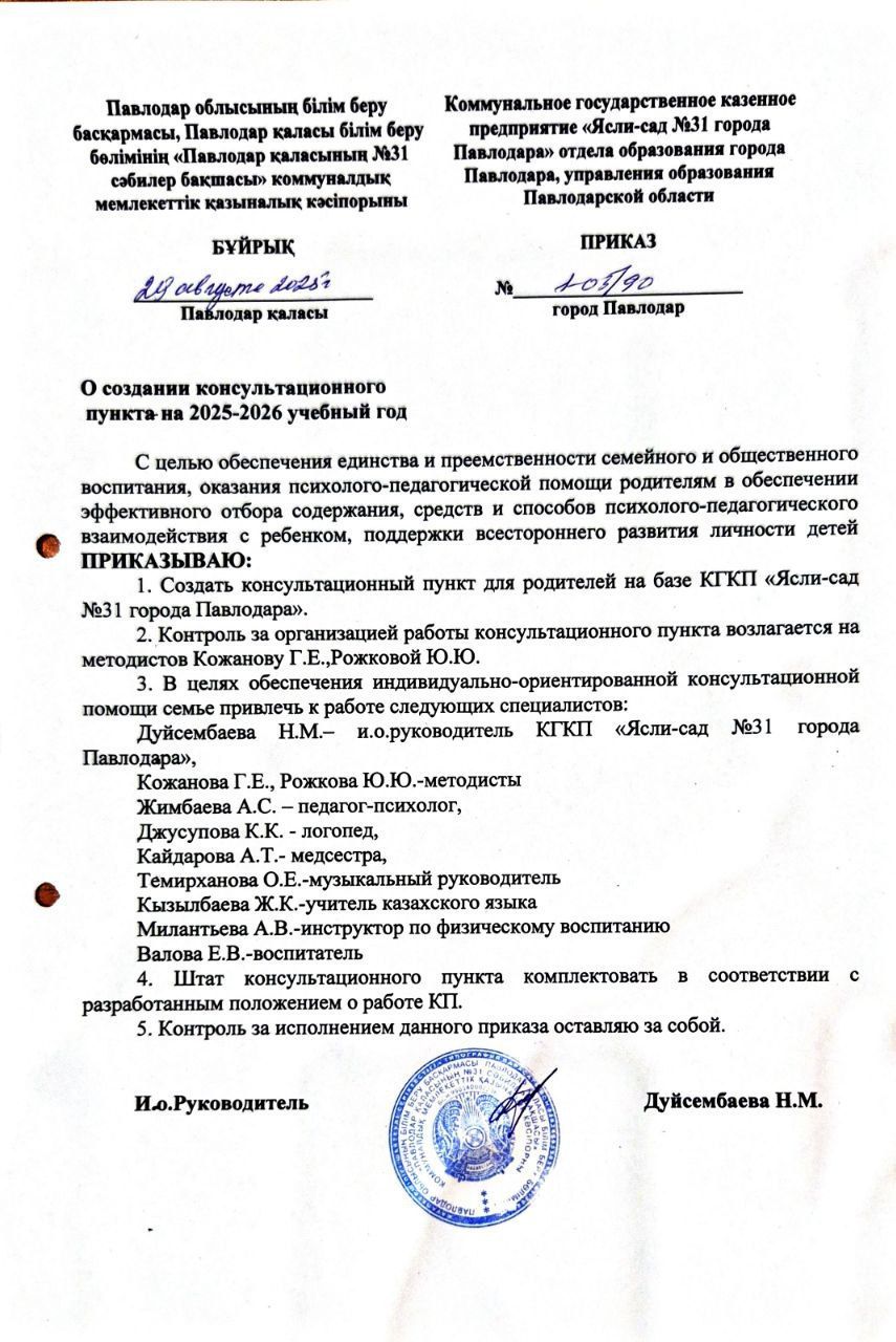 Приказ о работе консультационного пункта
